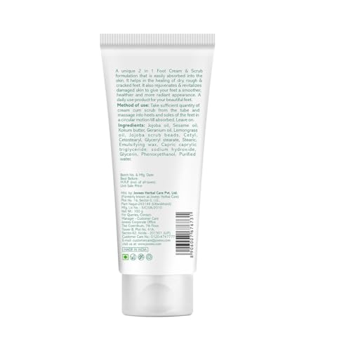 HomeHealth & PersonalSkin CareFeet CareFoot CreamsJovees Herbal Foot Care Cream & Scrub For Rough, Dry and Cracked Heel | 2-in-1 Formula For Moisturizes | Feet Cream For Heel Repair With Jojoba & Sesame | Suits both Men/Women 100g