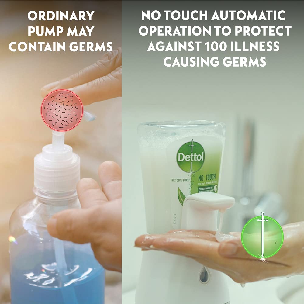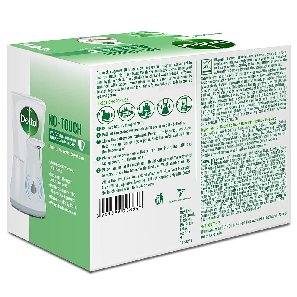 Dettol Handwash No-Touch Automatic Dispenser Device with Aloe Vera Refill 250ml | Aloe Vera & Moisturizer | 10X Better Protection from Germs
