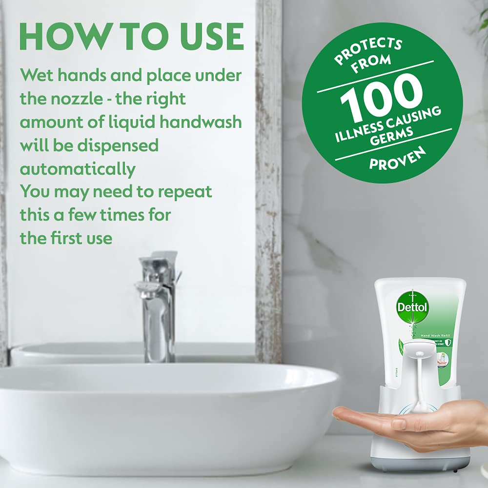 Be 100% sure to protect your skin from 100 illness-causing germs and bacteria. Dettol No Touch handwash system automatically senses your hands and dispenses the right amount of . Dettol Handwash is dermatologically tested and helps to encourage good hand hygiene habits. The Dettol no touch handwash refill aloe vera is enriched with ed moisture to help care for your skin and is suitable for everyday use to helpprotect against germs. Use Dettol's Germ Protection Handwash Liquid pH balanced formula every day and keep your hands hygienically clean and refreshed. This hand wash provides soft and rich lather leaving behind clean hands and mild aloe fragrance. Safety Information: Keep out of reach of unless under adult supervision. Avoid direct contact with eyes. For external use. In case of contact with eyes rinse immediately with plenty of water. If persistent irritation occurs seek medical attention.