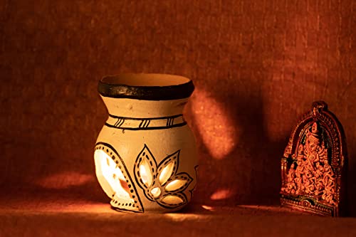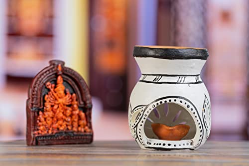 Karru Krafft Handcrafted Terracotta Oil Diffuser/ Kapoor Burner/ Holder and Durga Idol Set for Home Fragrance Festive Decor Diwali Decor Clay Home Aroma Fragrance (WHITE)