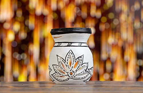 Karru Krafft Handcrafted Terracotta Oil Diffuser/ Kapoor Burner/ Holder and Durga Idol Set for Home Fragrance Pooja Decor Festive Decor Festive Gifting (WHITE)