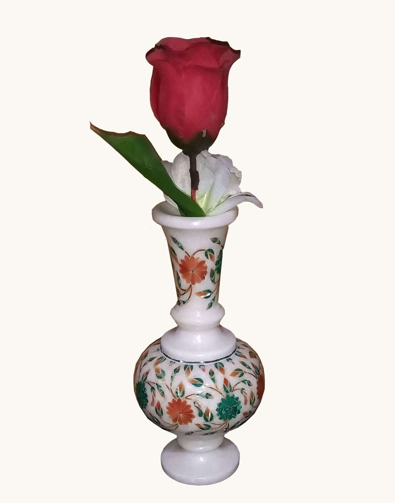 Note- MARBLE INLAY ART AGRA - PACCHIKARI Flower Vase is made of 100% Natural marble. As marble is a natural stone the shade of marble may not be exactly as shown as each piece is as individual as you. MARBLE INLAY ART AGRA - PACCHIKARI Handcrafted White Marble inlay Vase with classy colors and elegant designs every inch of this Vase is layered with richness Design: Floral with free hand design. We will Send you paper with Description and Meaning of the stone. We are himself manufacture of this product so we do custom design and bulk order also. To maintain this art piece simply clean it with cotton cloth and apply white wax for shine. It is an art piece which will be a beauty & the conversation piece at home.