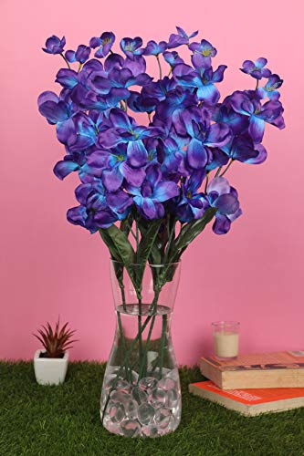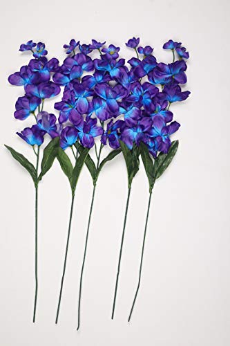 Pollination Rich Blue Orchid Artificial Flowers for Indoor Home Office (Pack of 5 25 INCH)
