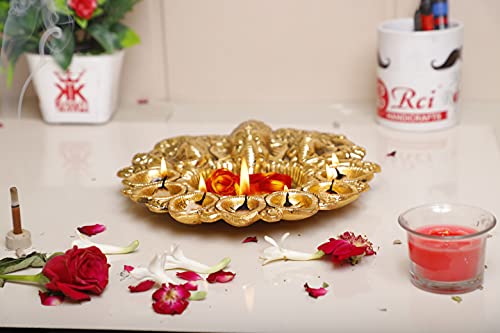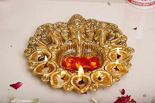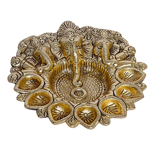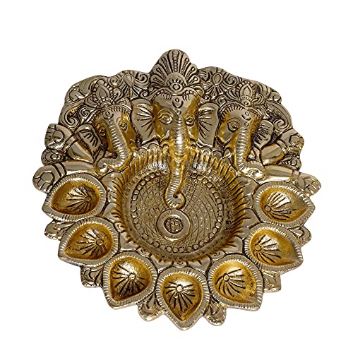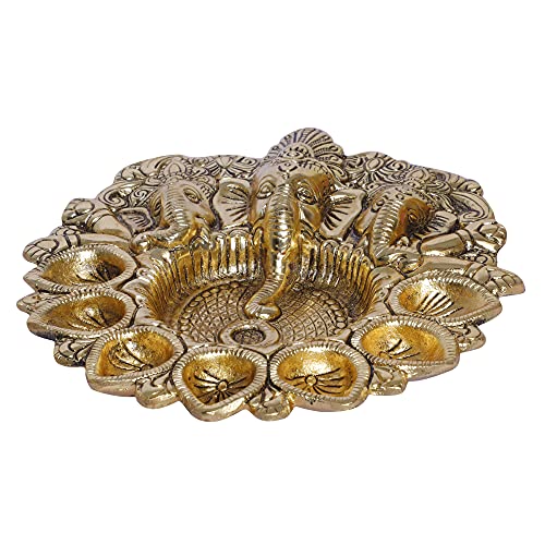 Kridaykraft Metal Ganesha Puja Thali with Diya Ganpati Pooja Thali for Puja Room Mandir Temple Ganesha Murti Idol Pooja Thali for Diwali Poojan Decorative Showpiece