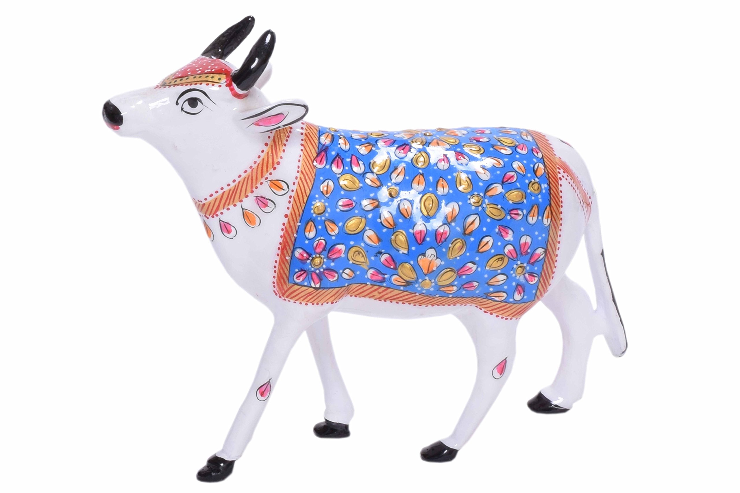 RAJASTHANI MARBLE HANDICRAFTS Painted Metal Cow
