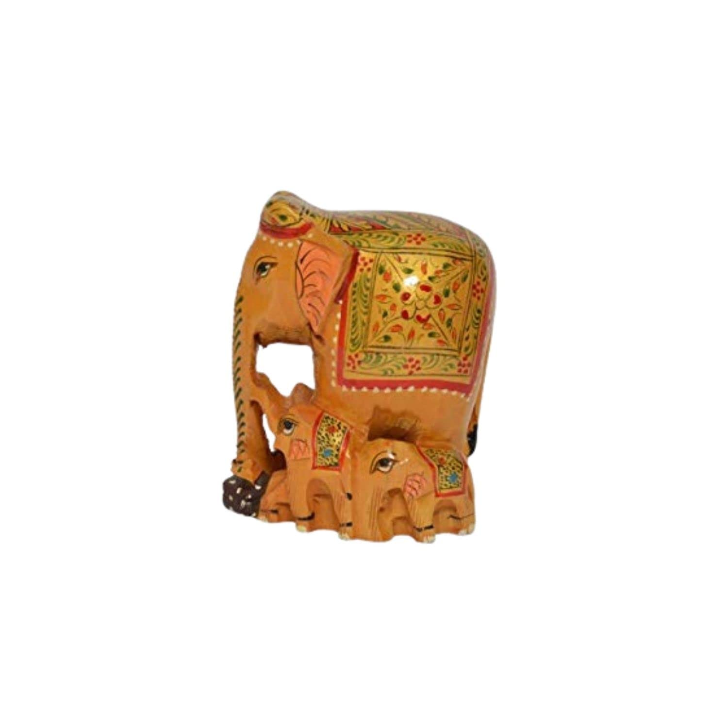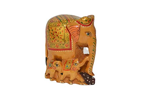 WOOD CRAFTS OF RAJASTHAN Wooden Painted Elephant Family Sculpture Statue Showpiece Festive House Warming Home Decor - Living Room/Guestroom - Multicolor Standard