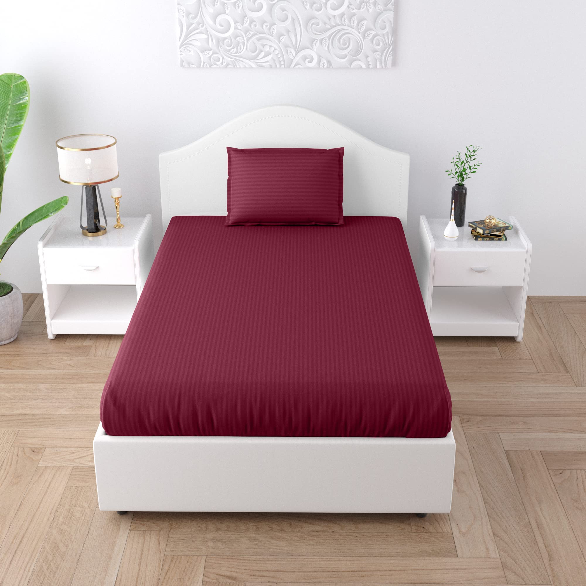 RAJASTHANI PUPPETS Dark Pink Satin Stripes Single BedSheet with Pillow Cover