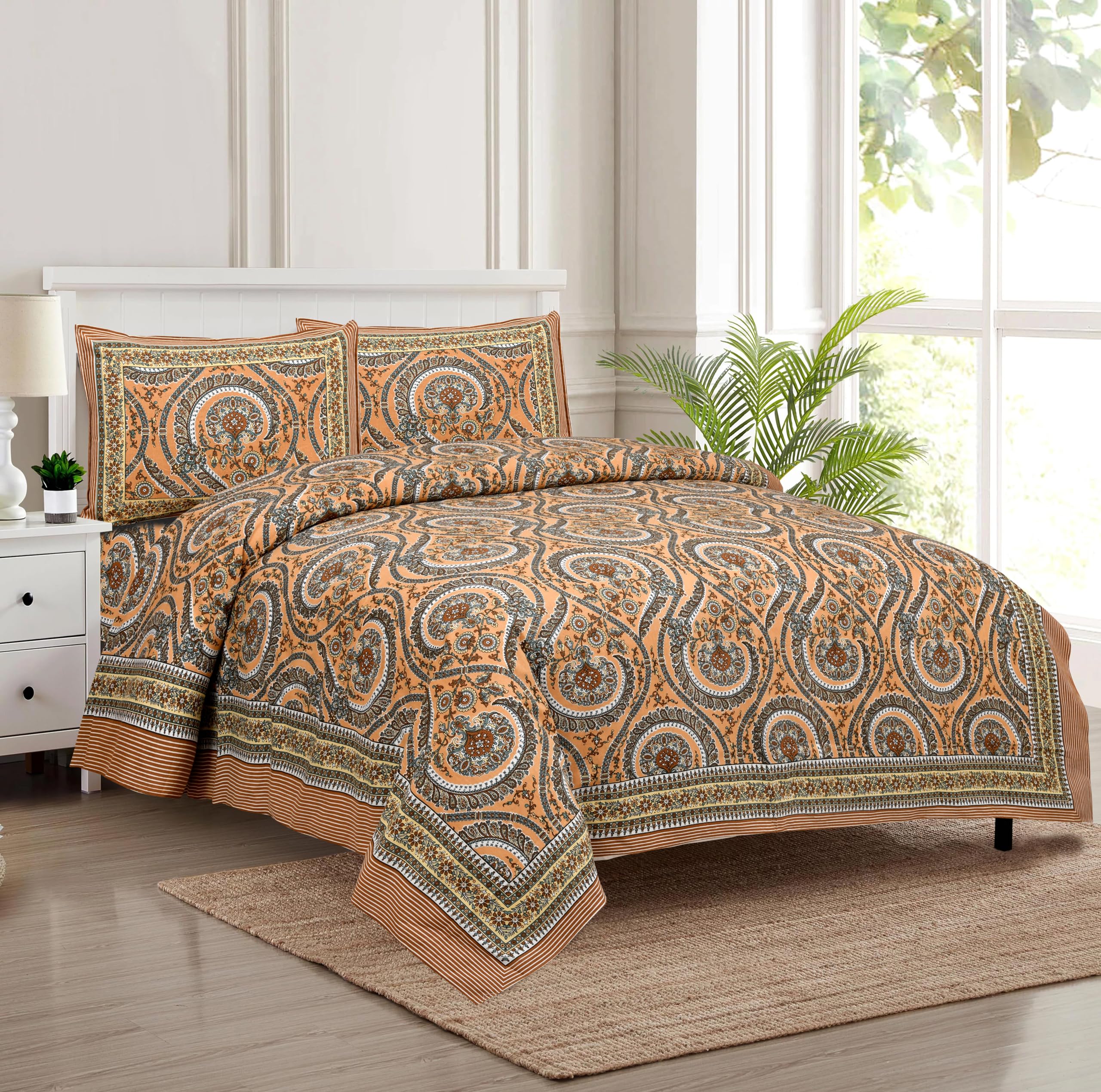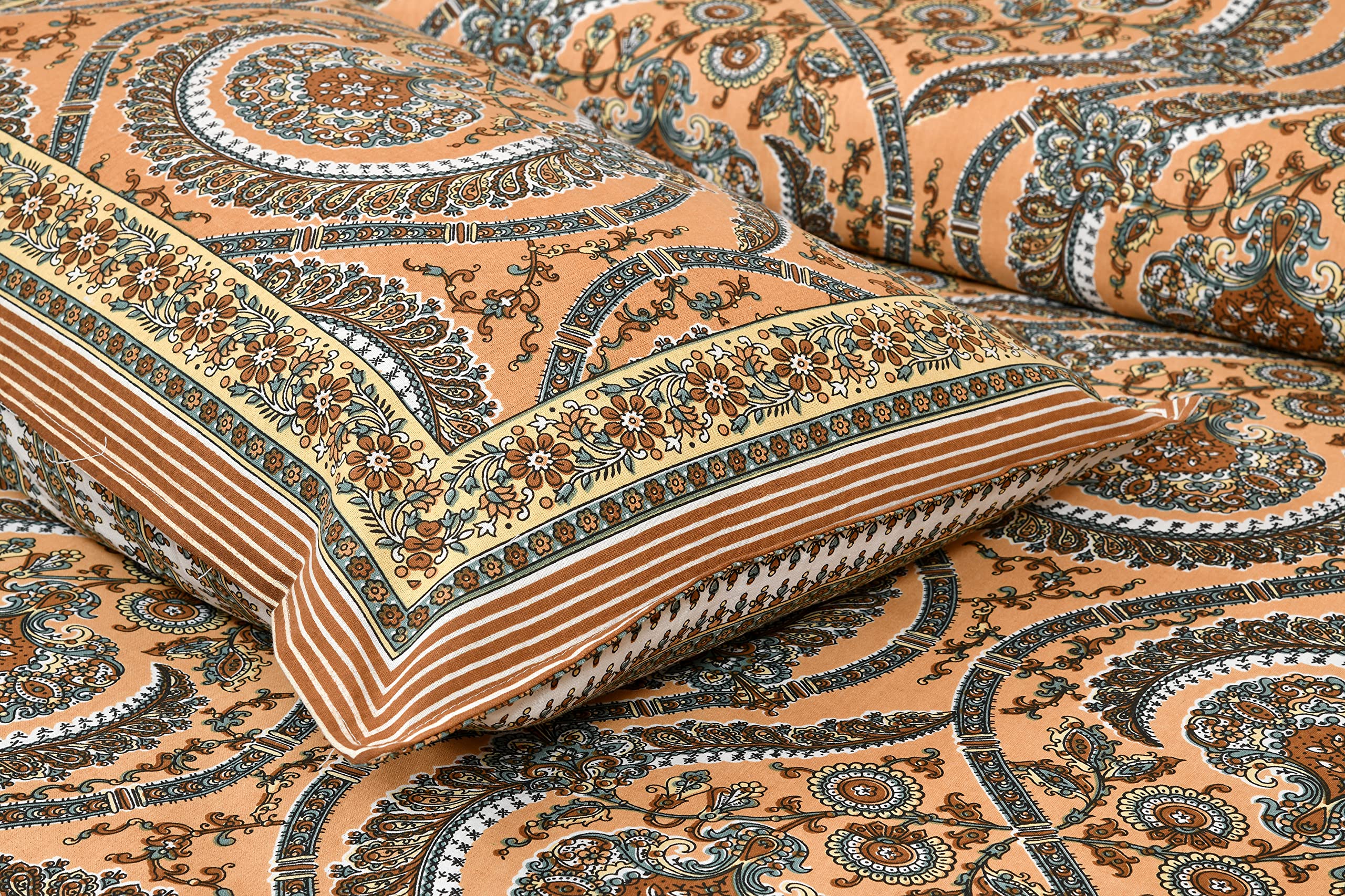 • MATERIAL: This cotton bed sheet with pillow cover is super soft and durable which could make you feel comfortable. Create the most comfortable and cosy feel for your family or your guests with our cotton sheets made with care for superior quality and dura