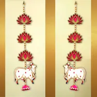 Cow Pichwai Hanging & Golden Lotus Wall Door Decor Hanging MDF for Home Temple All Festival Decoration (2 Pc's)