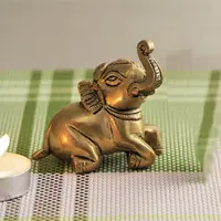 Brass Trunk Up Elephant Statue Animal Figurine for Home Living Room Decor