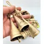 Set of 16 Shabby Chic Rustic Style Wall Hanging Bells. The golden color is actually a covering of brass. These bells are then baked in fire giving them their unique shades of brown rustic color. These cowbells have been purposely given a very rough look. Each bell has been individually handmade hence small variations are possible. Can be used for various purposes- to make Christmas wreaths wind chimes wedding decorations. Made In India Product by Finest Indian Craftsmen.
