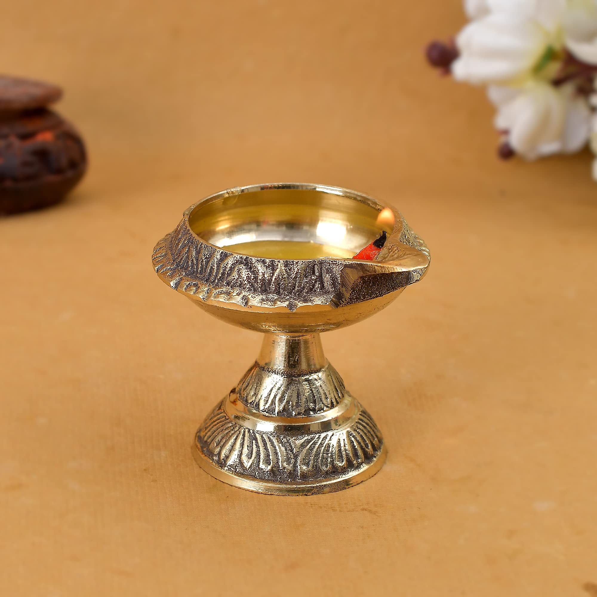 RAJASTHANI METAL HANDICRAFTS Metal Aarti Diya Brass Puja Deepak for Pooja Mandir Kuber Diya for Home