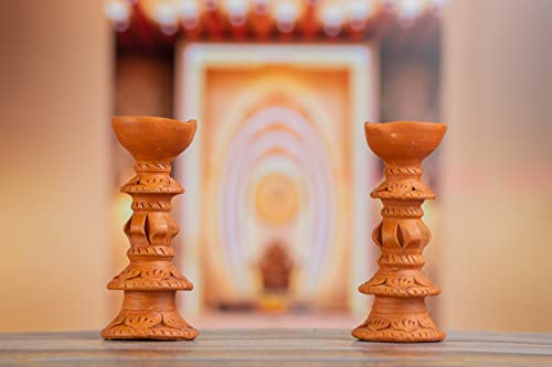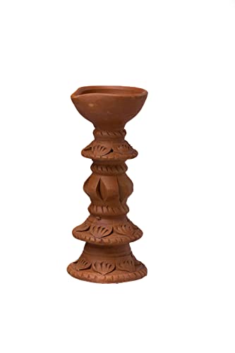 Karru Krafft Handcrafted Terracotta Stand Large Diya/Pilsuz Diya for Pooja Decor Festive Decor Diwali DecorHome Lighting Decorative Diya Festive Gifting Har Ghar Diya
