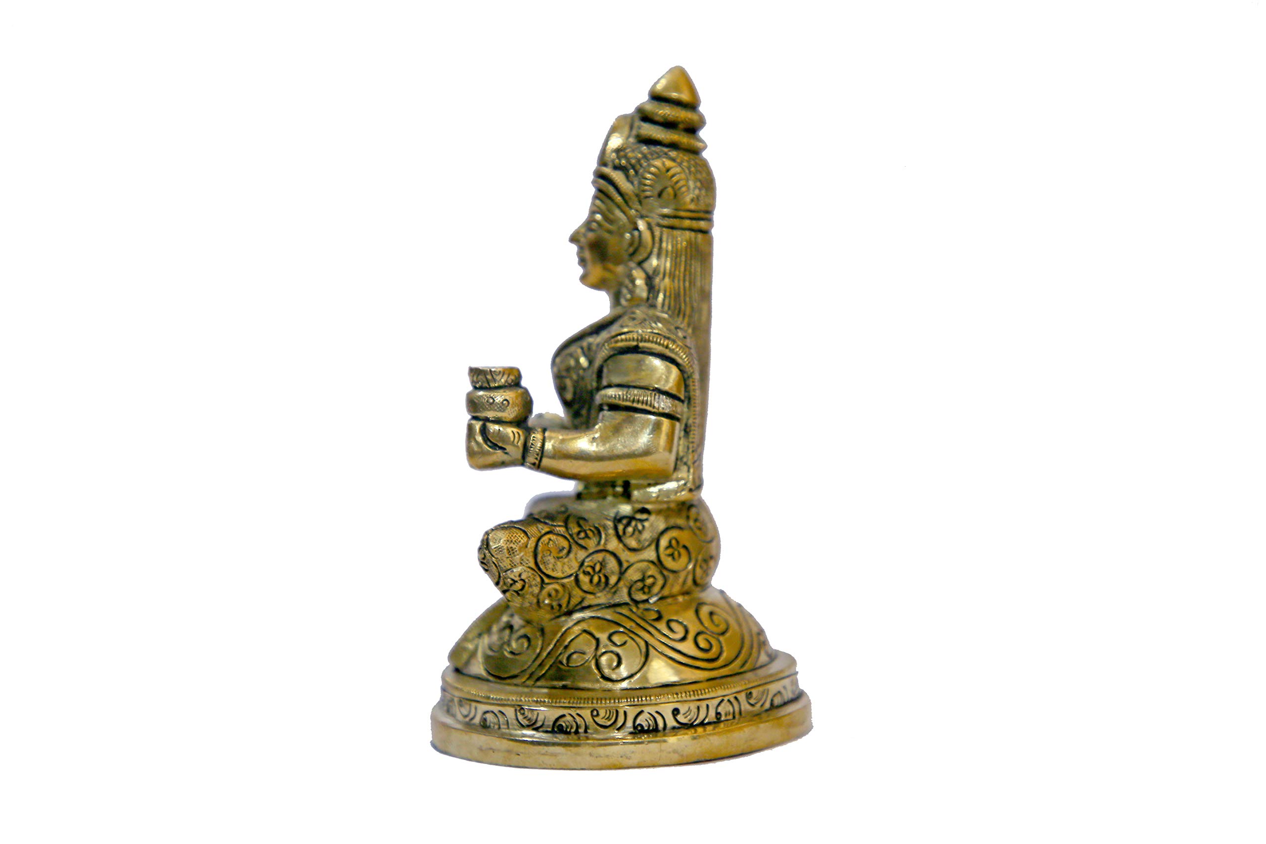 Elevate your surroundings with the divine presence of the Brass Annapurna Devi Idol. This exquisite statue of Annapoorani Mata exudes spiritual energy and intricate craftsmanship. Immerse your space in a sacred aura with this vibrant yellow deity statue. Place it in your home temple or sacred corner to enhance your spiritual ambiance. Experience the touch of tradition and reverence with this divine figurine. The Brass Annapurna Devi Idol is not only a decorative masterpiece but also a representation of the goddess's blessings. Let this statue grace your surroundings with its sacred presence. Embrace the spiritual connection and enrich your surroundings with this magnificent piece of art. Whether for personal devotion or as a thoughtful gift this idol holds the essence of spiritual significance and cultural heritage. Bring home the essence of divine nourishment and artistic craftsmanship with the Brass Annapurna Devi Idol. Add this sacred ornament to your space and bask in its spiritual radiance.