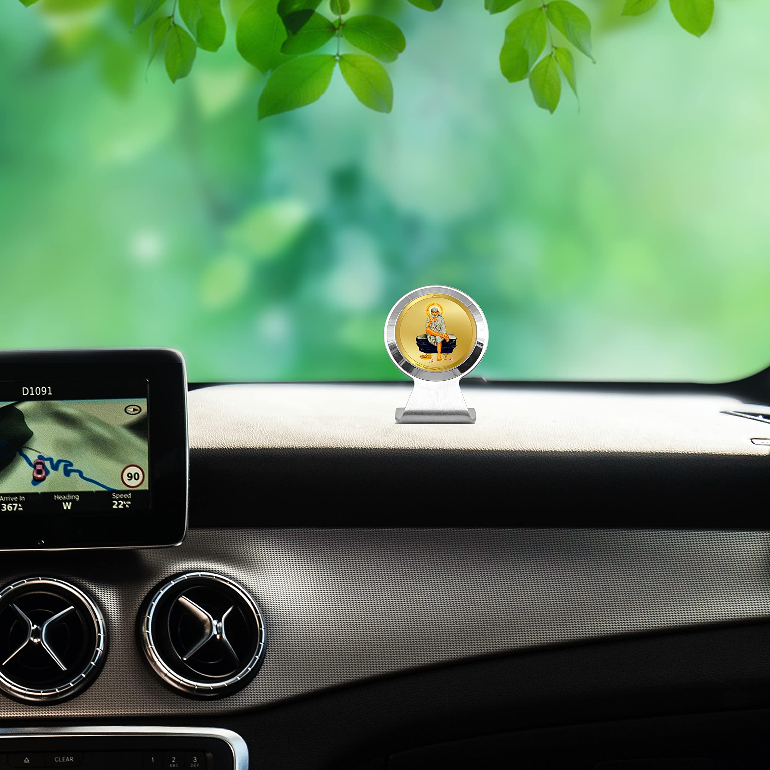 DIVINITI Sai Baba Photo Frame for Car Dashboard Car Idol Table Decor|MCF 1CR Metallic Car Frame with 24K Gold Plated Foil|Religious Frame For Pooja Prayer and Gift (6.2X4.5CM)