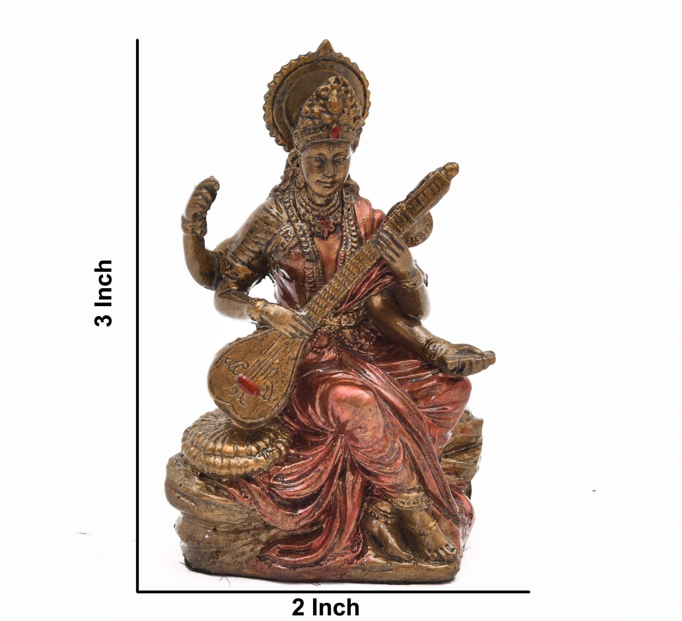 Archna Handicraft Polyresin Saraswati Ji Murti for Pooja Room Saraswati Maa Figrune Sclupture Idol (3 x 2 Inch)