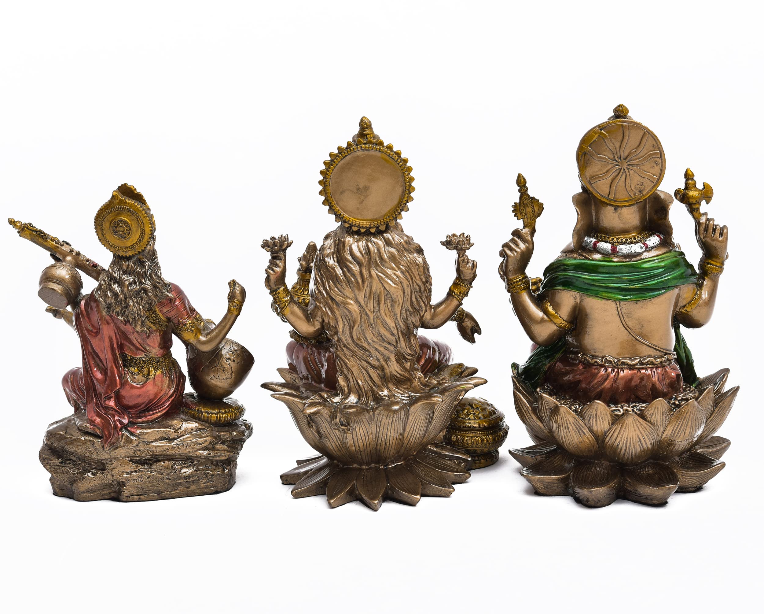 Festive Vibes Polyresin Laxmi Ganesh Saraswati Set Idol for Puja I Pooja Room I Office Temple I Lakshmi Ji Murti I Ganesh ji Murti I Saraswati ji Murti I Veena ji Murti I Diwali Puja