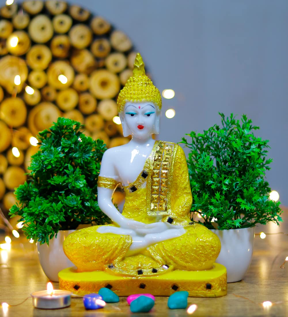HomeHomeSpiritualIdolsGW Creations Gautam Buddha Statue for Spiritual Home Buddha Idol Statue Showpiece with Artificial Flower Pots Combo for Wall Shelf Table Living RoomHome DecorItemDecoration ItemGift(Golden Buddha)