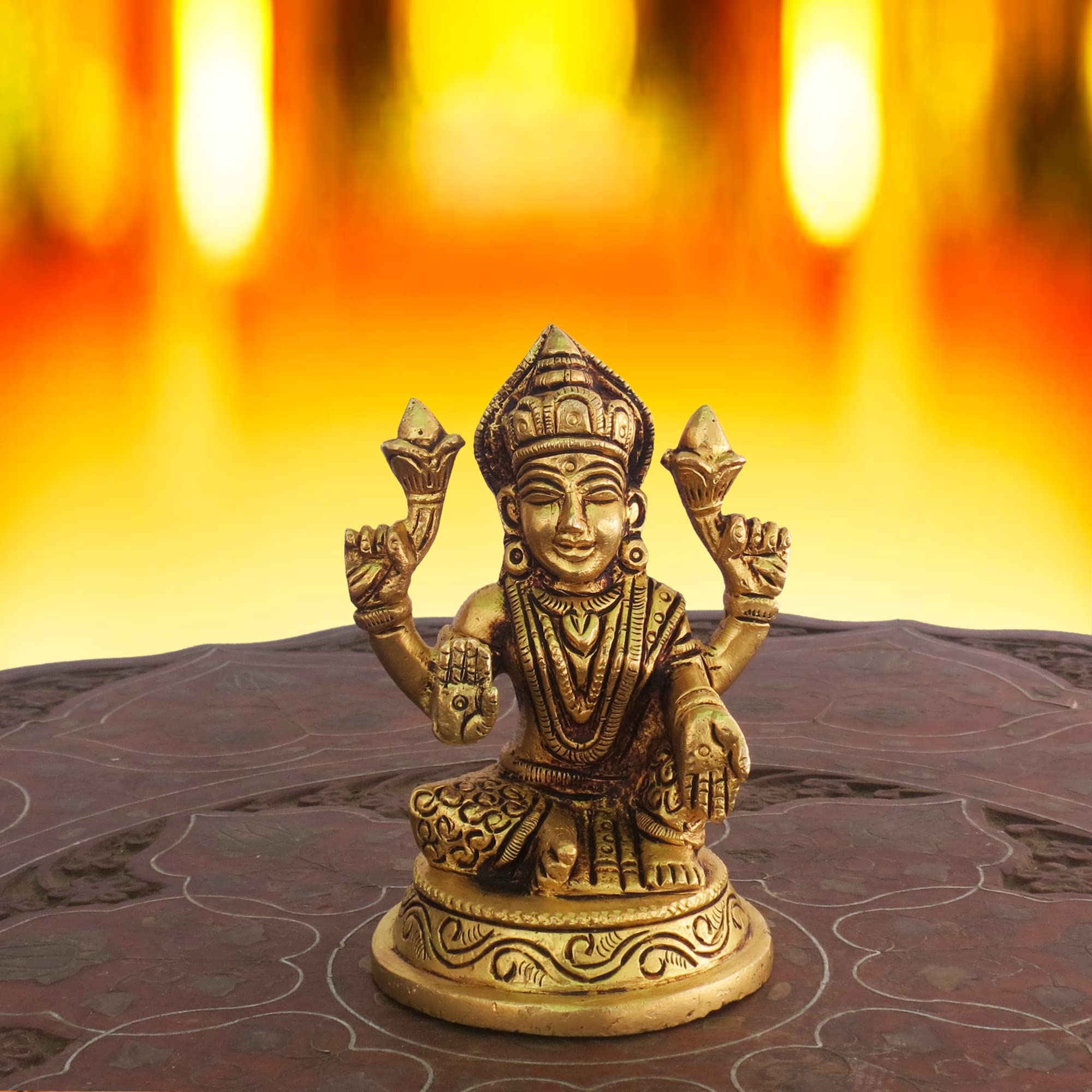 Brass Made: Each of these products is made of solid brass with carefully designed products that suit every possible place that this art can fit. Home Office Use: Complete the decor of your home in the utmost style or add some Indian flair to any room decor. Gifting and Decor: Each of our products is suitable for gifting purposes. This brass decoration item enhances the decoration and gives a safe and silent vibe to the home. This is perfect for home and office use. A valuable personal and professional collection. Product Colour Design & Weight May Vary Marginally Due to The Hand-Made Nature of Production. âKalarambhâ and âBharat Haatâ are Brands of Bharat Handicrafts. Buyer Are requested to check Original Product Purchase by Original Brand Owner Only As it is made with a die casting process it has a solid material with an antique outlook therefore this art is perfect for gifting to your friends and family. Care Instructions: Clean by Dry Cloth and Use Pitambari Powder Specially for Brass Material This productâs price includes product cost shipping & all taxes for the Indian government only. All other charges such as customs duty VAT & All other taxes outside of India are not included in the price & will be barred by the customer. Brass Small Lakshmi Laxmi Ji Sitting Idol Handicrafts Mahalaxmi Maa Devi Idol Pooja Best for Gift Showpiece HANDICRAFT ART BY BHARAT HAAT This Brass Statue of a Laxmi ji is meant for decorating your home in a Hindu way. Lord Laxmi Lakshmi Ji know as a Goddess of Wealth and Prosperity. Lend a visual treat to all those visiting you by getting this BHARAT HAAT Laxmi Ji. Place it in your living room and get praised for your exclusive choice. A great gift idea for house warmings and festivals. Our prices are very competitive and we ensure great customer satisfaction. This extremely detailed and well-made statue is made with pure brass material the special production process of this piece.