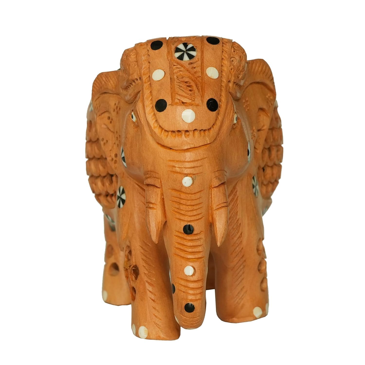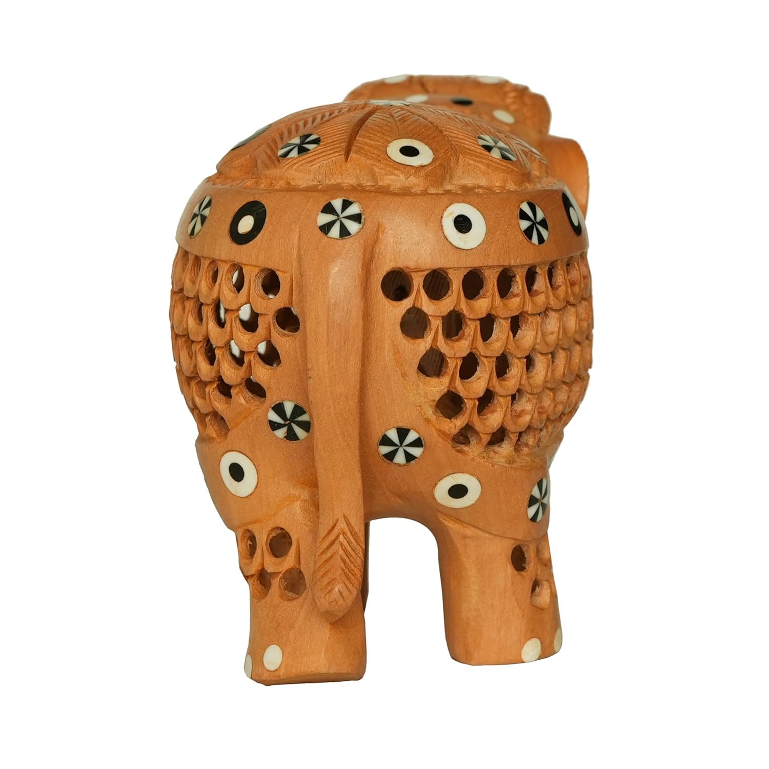 Indulge in the timeless charm of our handcrafted wooden elephant. Skillfully carved from wood each piece exudes elegance and craftsmanship. Perfect for adding a touch of exotic flair to your home décor this wooden elephant serves as a captivating conversation starter in any room. Gifting Each of our products are suitable for gifting purpose. This brass decoration item enhances the decoration and gives safe and silence vibe in the home. This is perfect for home office use. A valuable personal and professional collection Thoughtful Gift Ideal for gifting to loved ones or for personal use in home or office spaces bringing spiritual tranquility. Measuring compact 5 x 2.2 x 4 Inches itâs designed for portability without compromising on rich resonant tones. Weighing just 0.18 kg Clean by Dry Cloth and Use Pitambari Powder Specially for Brass Material