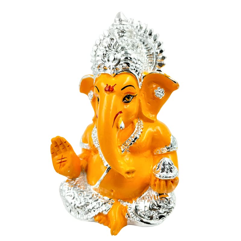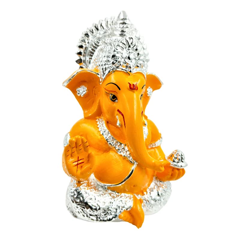 Karigaari India Ganpati Silver Plated Gold Resin Ganesha for Car Dashboard Idol & Showpiece (4 x 4 Yellow) showpiece(Pack of 1)