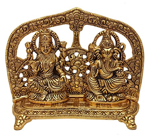White Metal Gold Plated Laxmi Ganesh Chocki God Idol