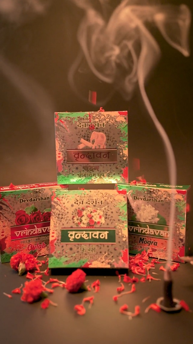 Transform your home into an enchanted sanctuary of peace and spirituality with Devdarshan Vrindavan Mogra Dhoop. This floral fragrance will gently float its way throughout your home instantly lifting the mood and creating a kind and inviting atmosphere. SAFETY INSTRUCTION: Always Keep burning dhoop / Incense sticks on dhoop / Incense stand / holder make sure you keep away from flammable articles ashes should always fall on fire proof or heat resistant surface.