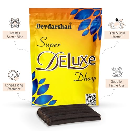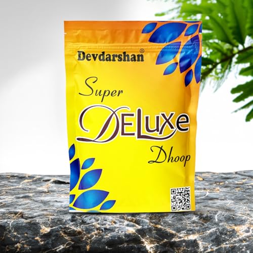 Transform your home into an enchanted sanctuary of peace and spirituality with Devdarshan Super Deluxe Dhoop. Fragrance of Super Deluxe Dhoop will gently float its way throughout your home instantly lifting the mood and creating a kind and inviting atmosphere. SAFETY INSTRUCTION: Always Keep burning dhoop / Incense sticks on dhoop / Incense stand / holder make sure you keep away from flammable articles ashes should always fall on fire proof or heat resistant surface.