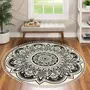 The large round rug in shades white and blue draws inspiration from Mandala aesthetics. With its classic design and tropical vibes, the Boho round mat can be used as a centerpiece in a living room. One can use the round floor mat as a statement piece in the drawing-room and it can be a perfect conversation-started in a room full of guests. This is a versatile mat and can also be used as a Meditation Mat & Wall Decor Tapestry. Size: 100 cm DColor: Black & BeigeMaterial: 100% cottonProducts included: 1 rugWash & Care- The rug can be cleaned by both machine-wash and handwash, although handwash is recommended for longer durability.Experience art & Fine craftsmanshipOur products are handcrafted by artisans who have honed the skills over time. We care for nature by using sustainable manufacturing techniques and materials. We take pride in uplifting craft and artisan community and follow fair trade practices.