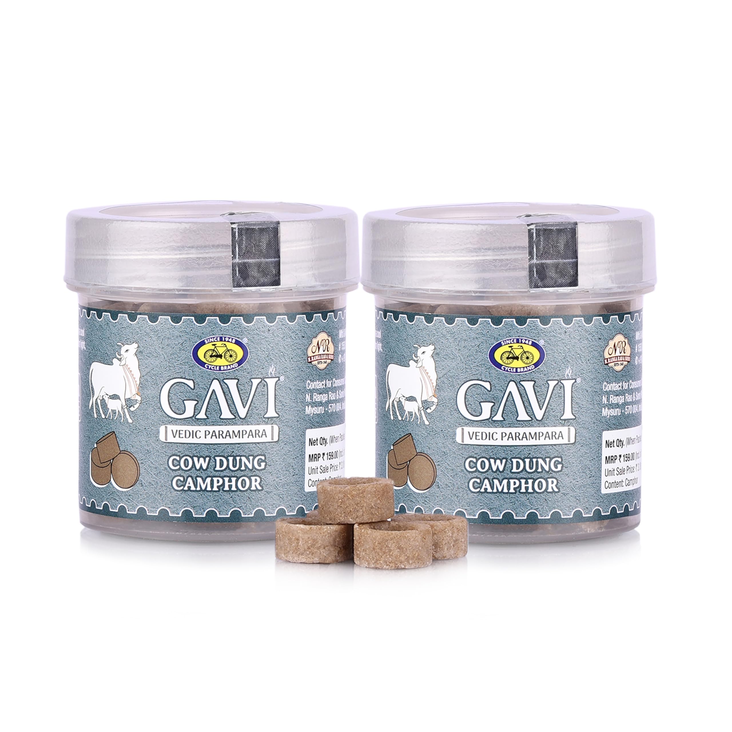 This is a special combo pack of 2 Gavi Cow Dung Camphor tablets from the House of Cycle Pure. Each pack weighs 50 gm and is made with two pure and sacred ingredients cow dung and camphor - for a sanctified ritual/puja experience.