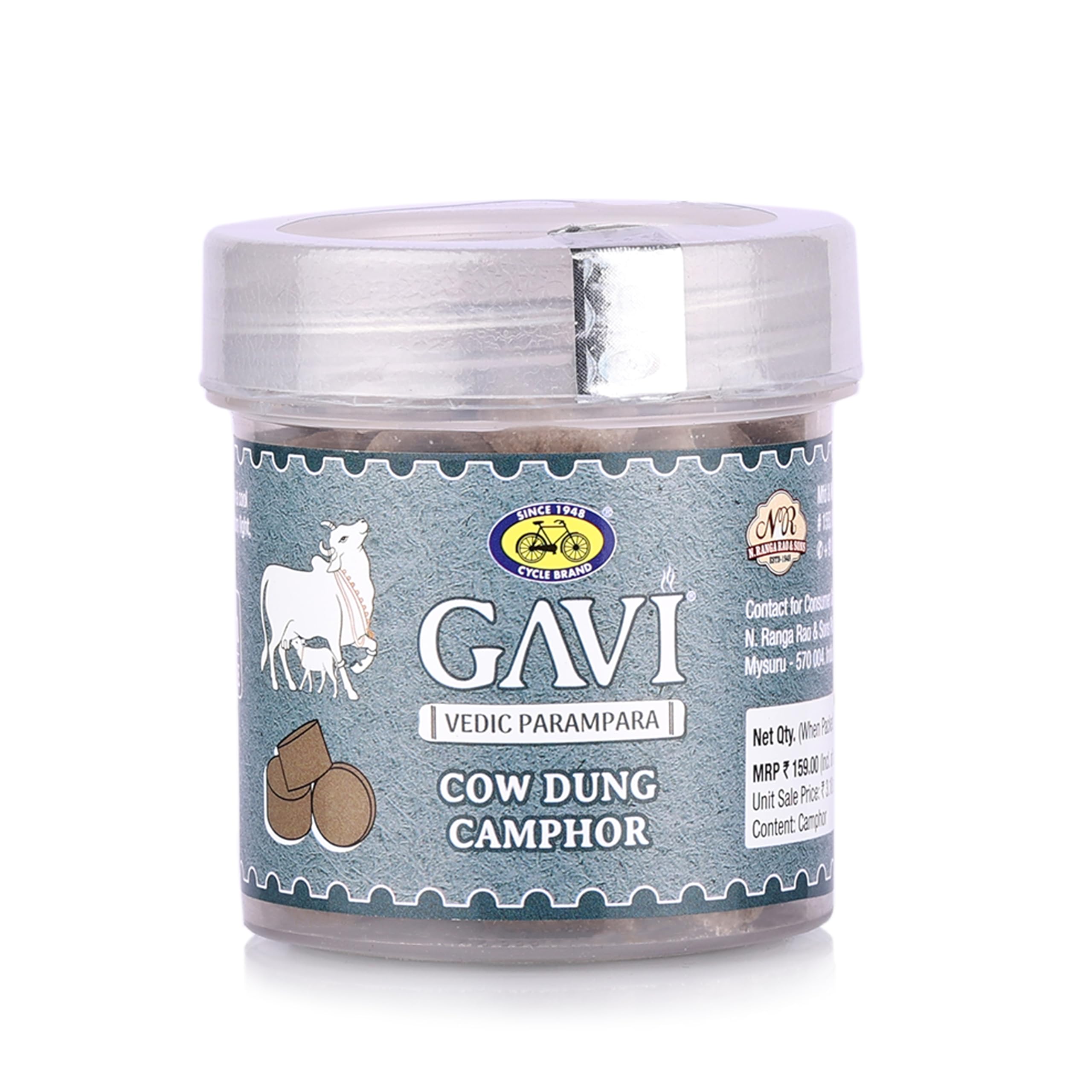 ABOUT THE PRODUCT: This Pack of 2 Gavi Cow Dung Camphor from the House of Cycle Pure is made with two pure and sacred ingredients cow dung and camphor - for a sanctified ritual/puja experience. The desi cow dung is sourced directly from Gaushalas process