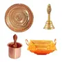 Indian Handicrafts Export Combo of Copper Puja Thali/Garuda Ganti/Panch patra/Yagya Hawan Kund Indian Cultural Religious Item Best for Temple Home Office Gifts