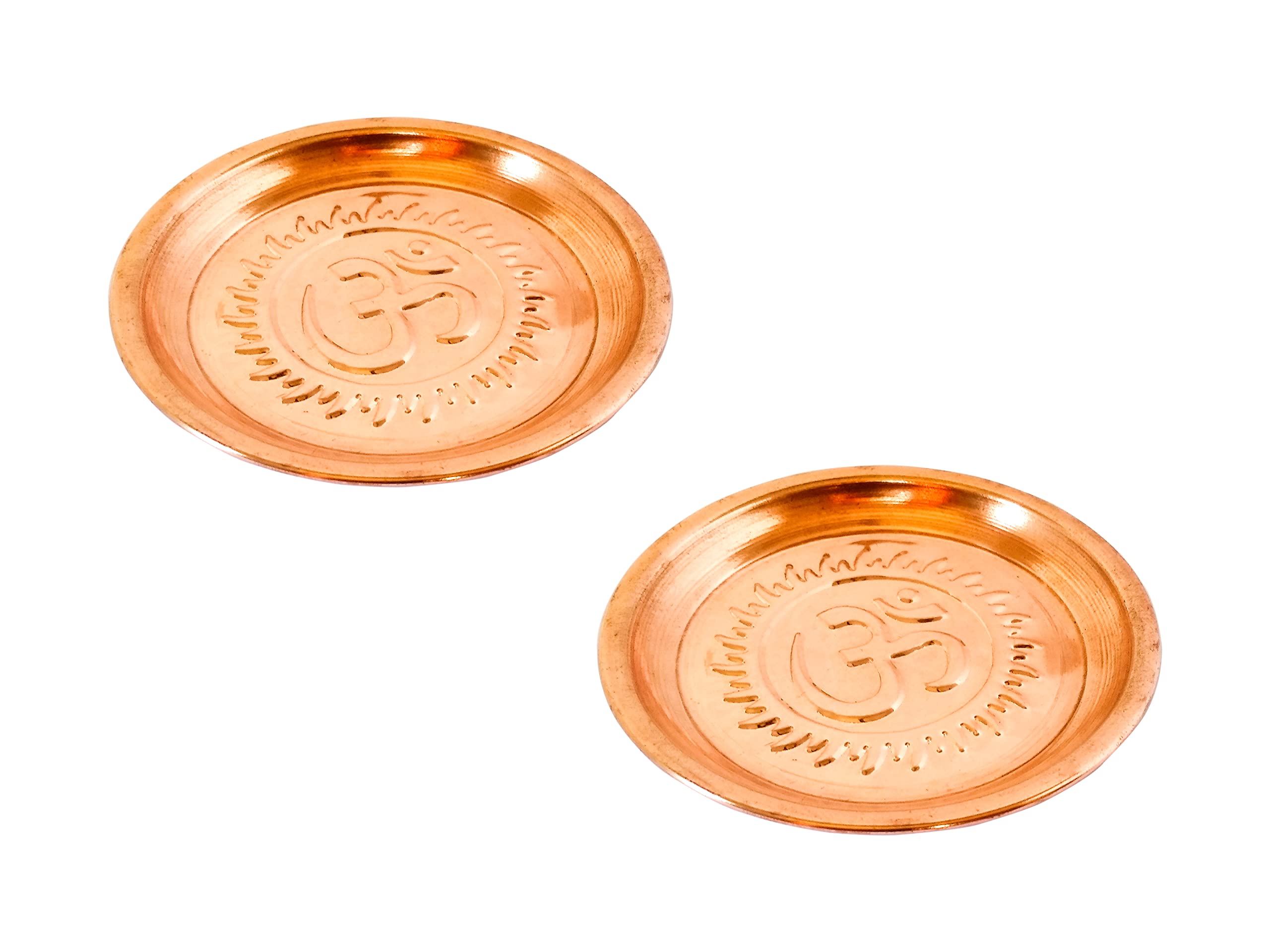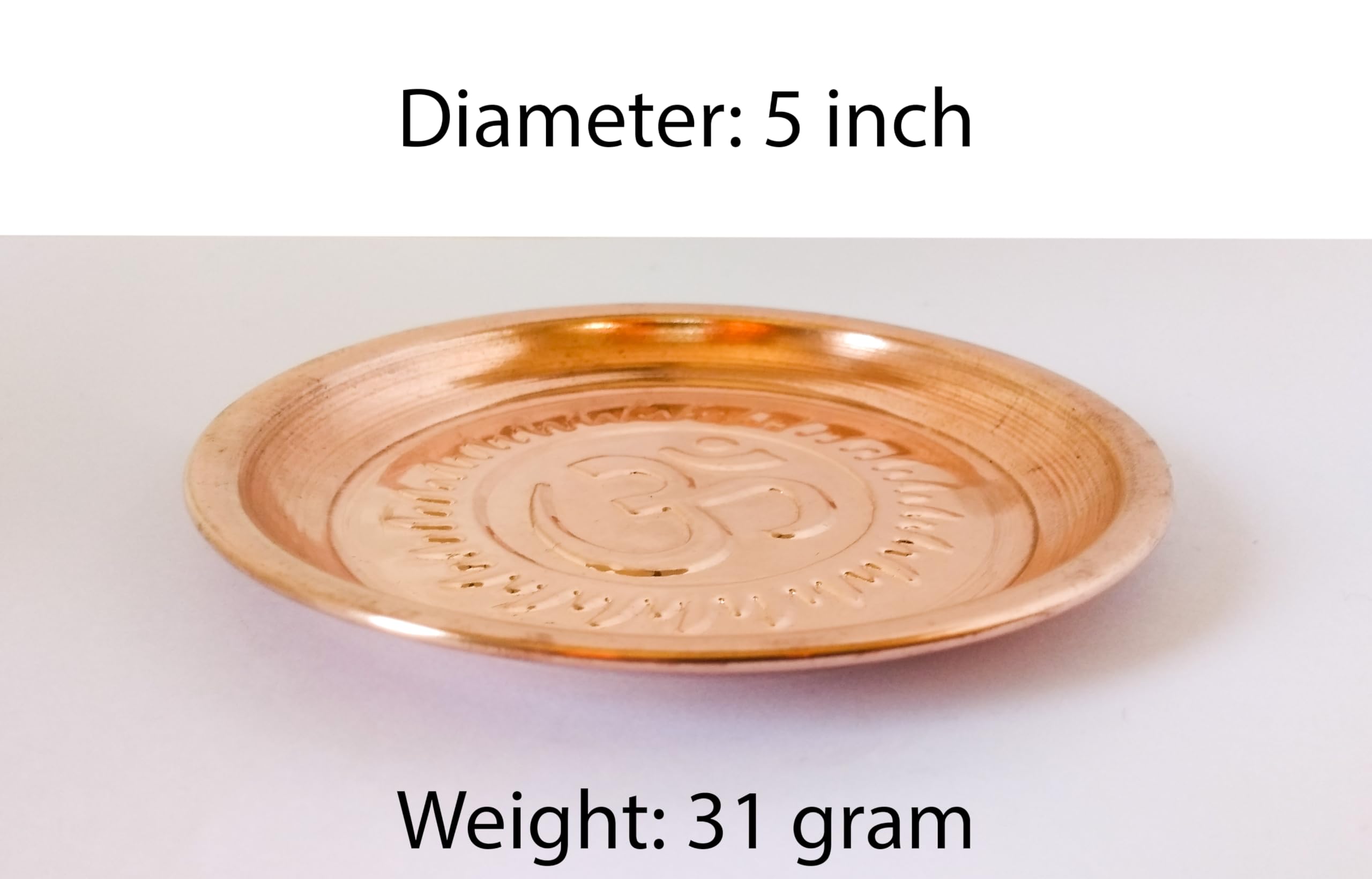 This small copper plate has a Handcrafted Diameter of 5 Inches. This is a delicate lightweight plate. Unadulterated Copperplate. This Beautiful Copper Plate can be utilized for serving Diya plates prasadam plates or small idol plates in the home temple pooja room and is exceptionally engaging and eye-catching. Simple to use and clean. Ideal for Diya plate god idol plate bhog Prasadam Prashad plate/thali/bowl/ Patra for pooja home mandir aarti harathi puja item pooja Multipurpose plate.