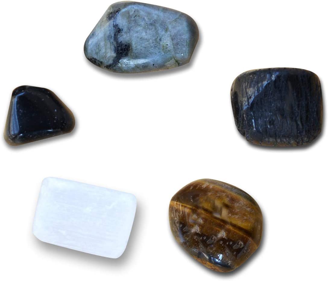 How to use * The set is energized by experienced Reiki Healing Grandmaster to give positive, protection, best and quick results. *Keeping the stones in aura creates a powerful energy field around for protection. *You can also hold the stones in your hand while meditating and visualize a strong protecting energy shield around you. *Black Tourmaline - The gentle protector, Tiger's Eye - A strong protector, Labradorite - Reflects back the negative energies to the source, Black Obsidian - The abrupt and violent protector, Selenite - The Angelic Protector Note*All these stones and crystals are original and natural. Nature imprints its contours on its creation so be happy to accept crack marks, holes andcolour variationson your collection. This assures that its natural and authentic. For best results just spray our product 'Cleangizer' to clean and energize these stones regularly Information provided is learnt from experience of various healers to help healers/believers. This is any case is not any alternative to medical advice. Use of the product is the personal choice of the user and the result cannot be guaranteed