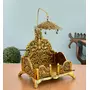 This beautiful and innovative designer singhasan is an amazing piece of art. The throne is made of beautifully carved peacocks. The idols of gods can be placed on it and the chhatra is there to cover the idol. It is a very beautiful piece to be kept in any pooja room. It is an elegant and different piece. It can be the best gift to your friends and relatives on all occasions like birthdayshousewarming gifts etc. As it is handmade slight changes in colour and design might vary