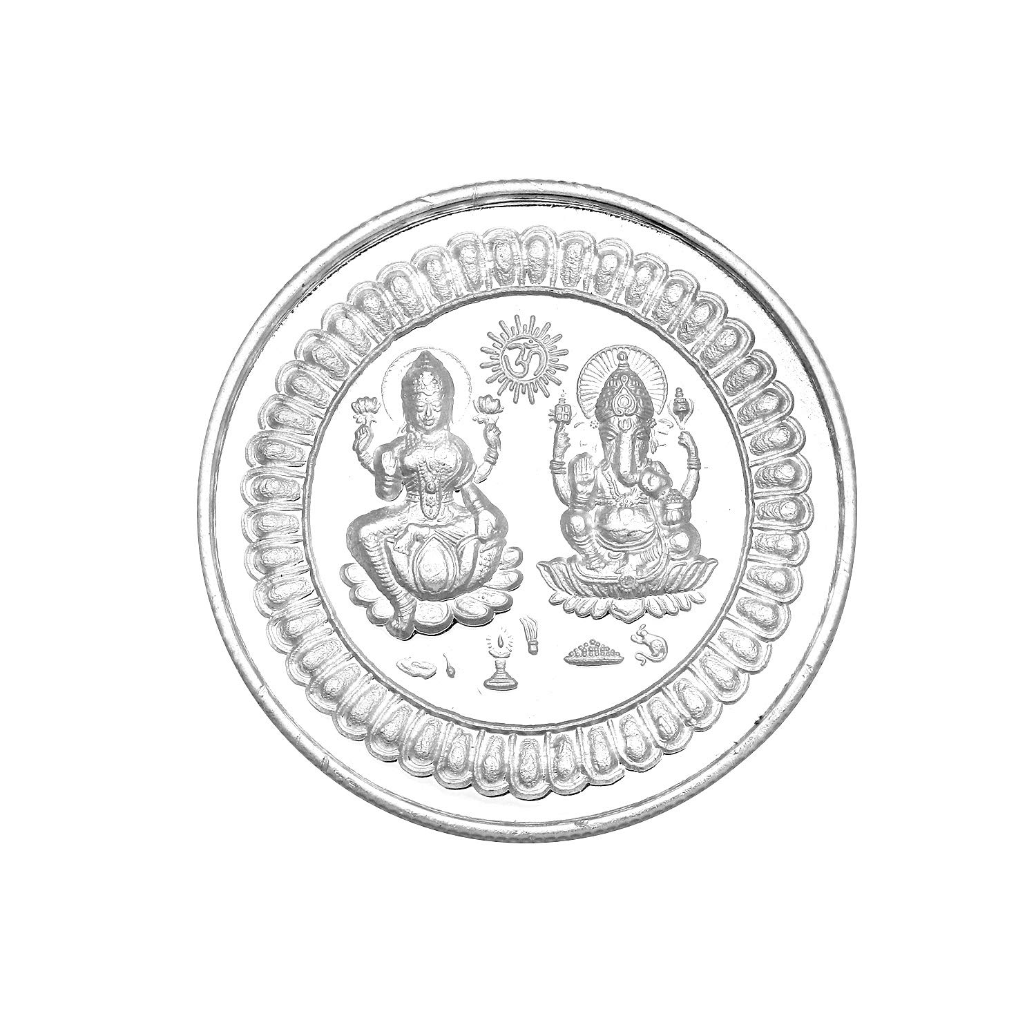 SILVER FILIGREE CRAFT - CHANDI TARKASHI Exclusive BIS Hallmarked 999 Purity Pure Laxmi Ganesh Silver Coin (20g)