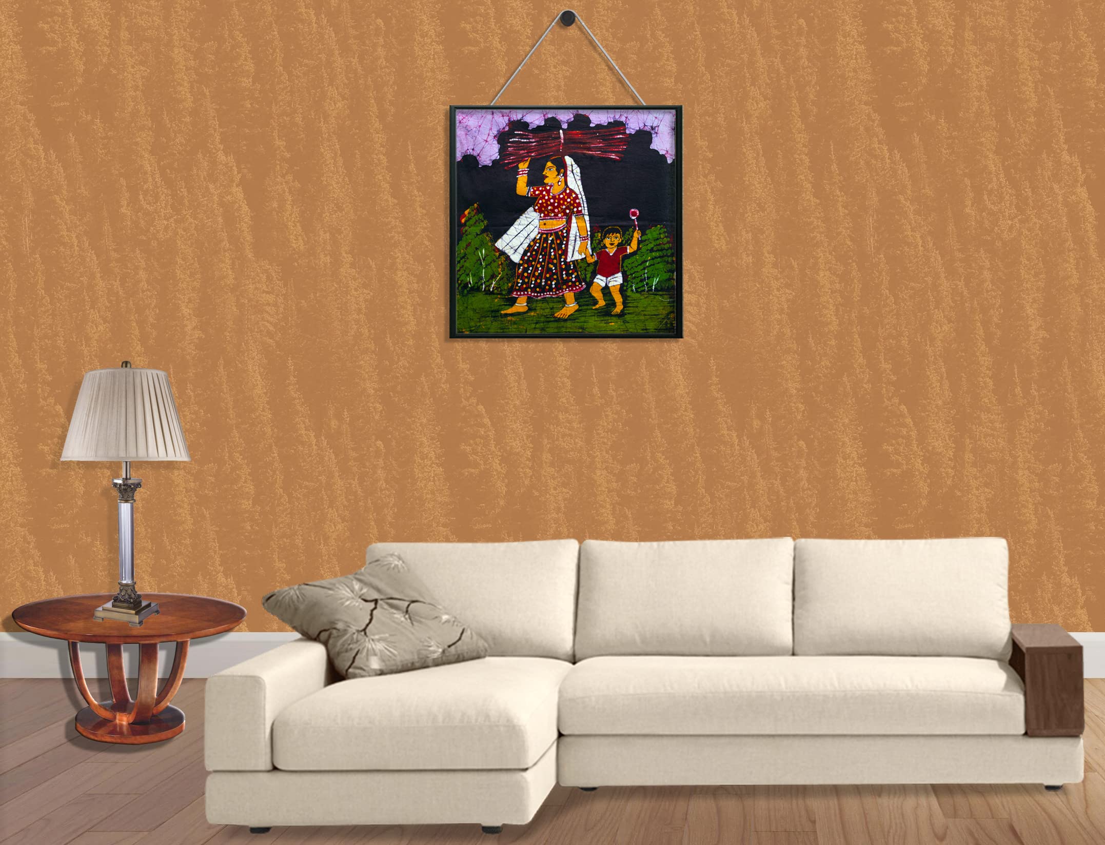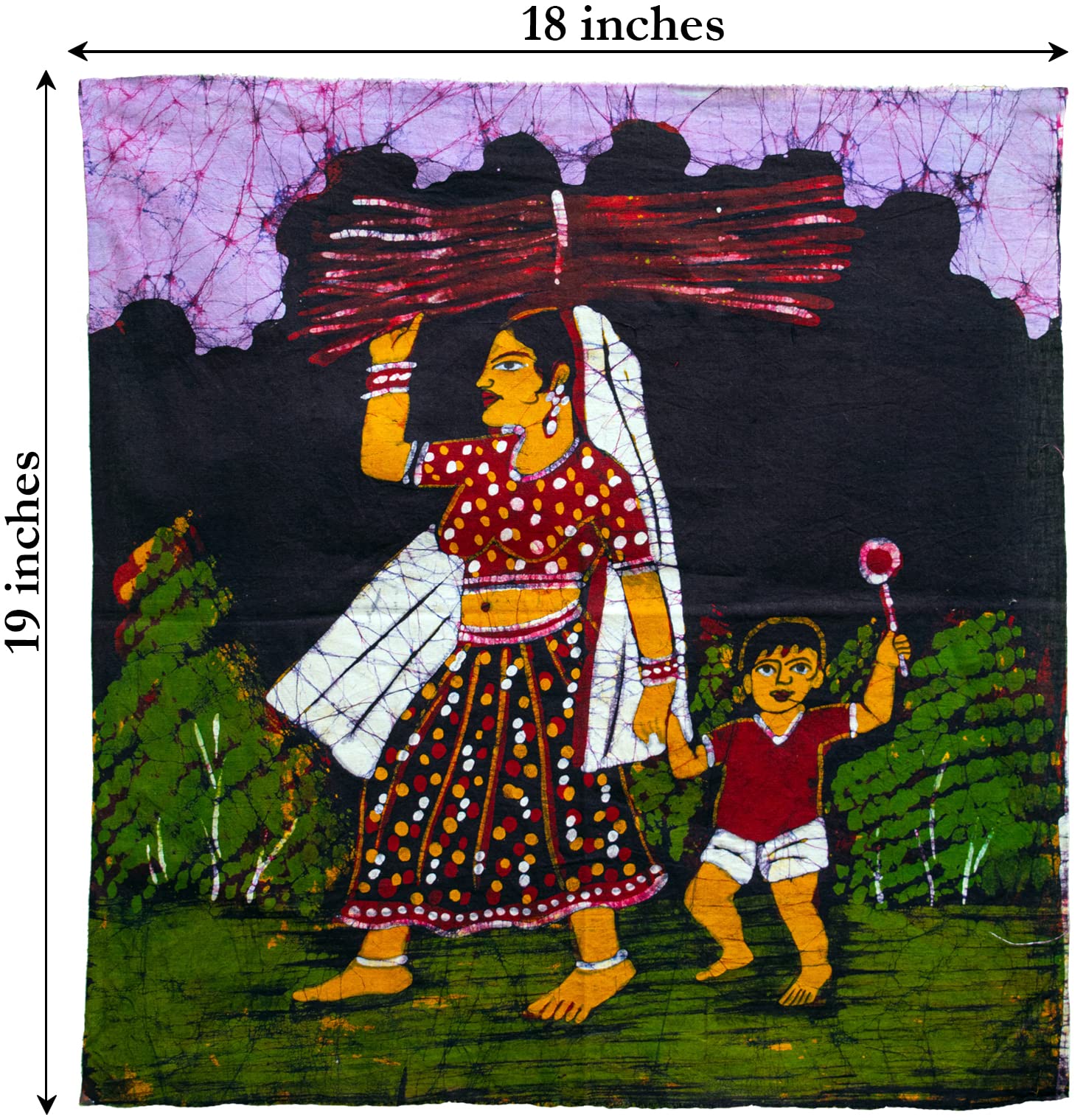 PAPIER MACHE MASK OF GODS - Mother and Her Child Batik Painting on Cloth Unframed (19 x 18 in)