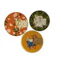 PICHWAI- PAINTED TEMPLE HANGING - Cows Orange Pichwai on Wooden Plate (A set of 3 pcs) (Handmade Painting). Overview a beautiful painting involves the action or skill of using paint in the right manner; hence the end product will be a picture that can speak a thousand words they say. Arts have been in trend for quite some time now. It can give different viewer different meanings style and design the saf wood matte abstract painting with frame is quite abstract and mysteriously beautiful. The painting has a nice frame to it. You can gift this to a family or a friend. The painting has various forms of certain figures on it as seen in the image. You can add a good set of lights to the place where the painting is and the decor will give a different feel and look to the place. Quality and durability the painting has a matte finish.