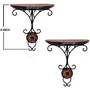 WOOD CRAFTS OF RAJASTHAN Wooden & Wrought Iron Fancy Wall Shelf (Brown & Black Size - 8 x 4 x 9.5 Inches) Pack of 2