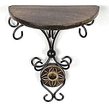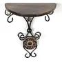 WROUGHT IRON CRAFTS Wooden & Wrought Iron Fancy Wall Shelf (Brown & Black Size - 8 x 4 x 9.5 Inches) Pack of 1