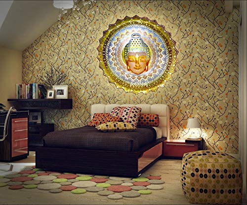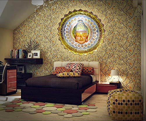 AONA Buddha Metal Wall Decor Wall Sculpture | Wiser Wrought Iron Round Wall Hanging | Wall Mounted Hanging Art Decor Buddha Antique Design Sculpture for Home Living Room Bedroom with LED Light