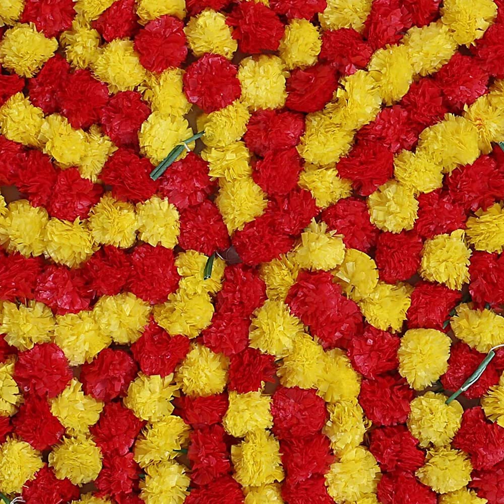 • Pack of 15 Pieces of Artificial Marigold Fluffy flowers Garlands for decoration