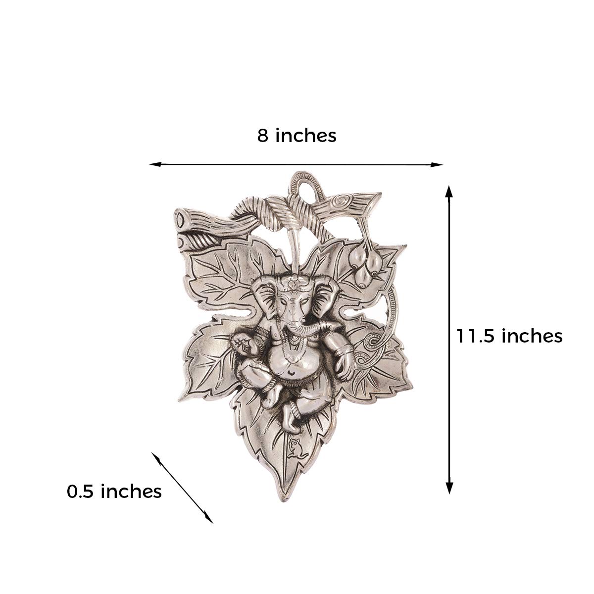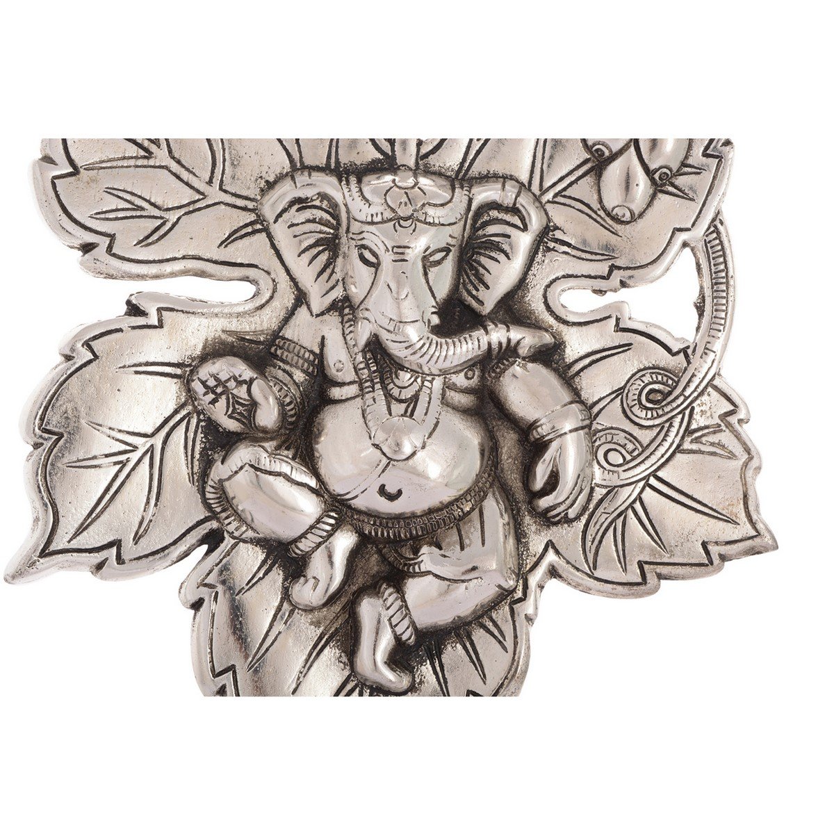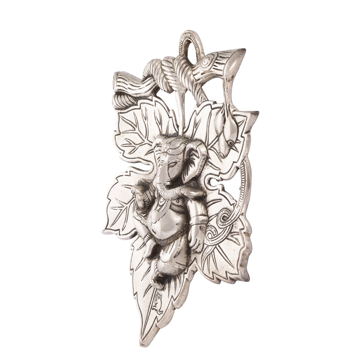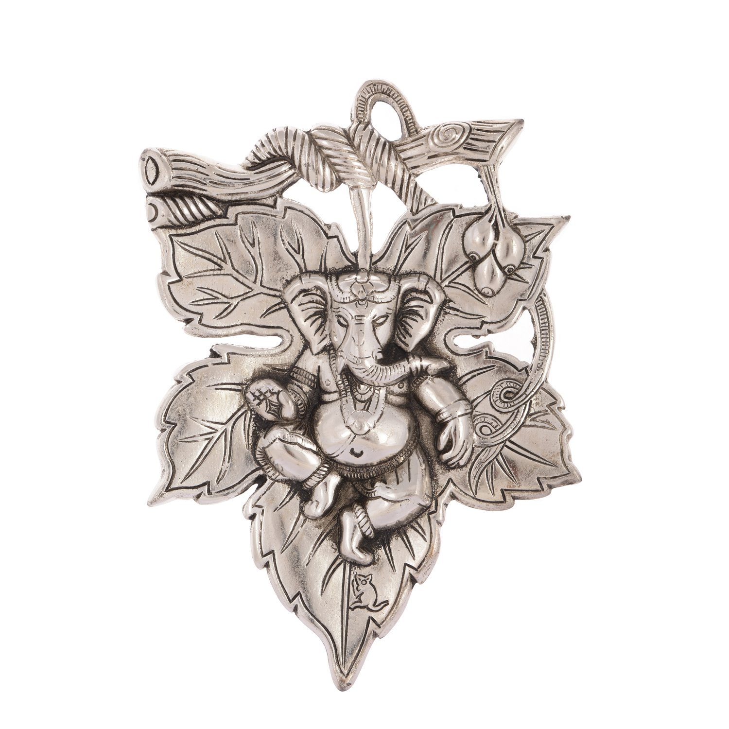 JAIPUR STONE WORK Lord Ganesha on Creative Leaf Metal Wall Hanging (20 cm x 1 cm x 29 cm Silver)