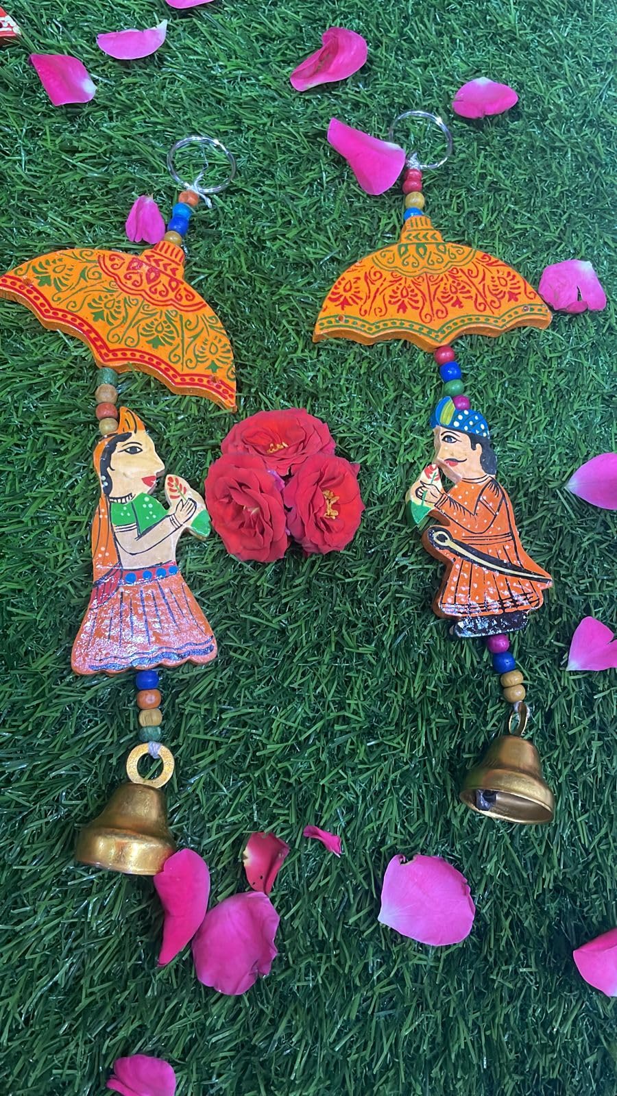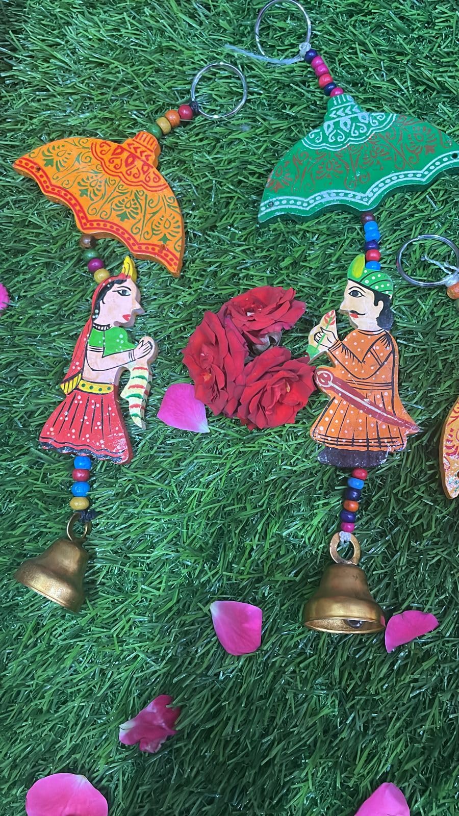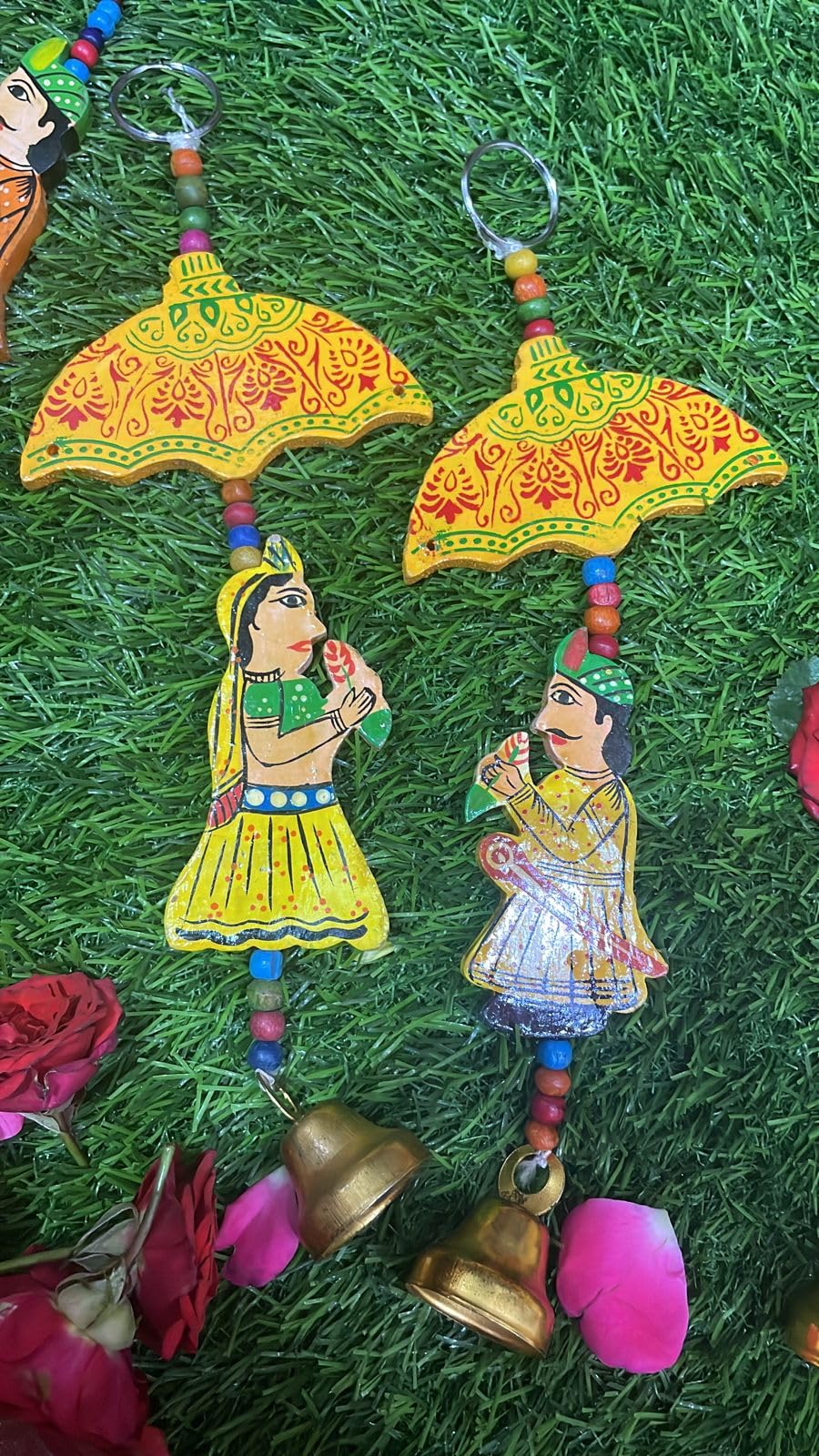 wooden hanging pair Wooden Raja Rani pair Diwali Navratri return gift bulk order Navratri wedding return gift. Torans are traditional decorative hangings that can be hanged on doors as well as walls and can be used on many occasions like Pooja Festivals Housewarming Parties Marriages and inaugurations etc. An effortless way to add luster to your festive gala. These door hangings are perfect for creating a grand look for your door A symbol of happiness and charm. Unique Design Traditional Look Easy to Clean Durable Auspicious Economical This Artistically Handcrafted Auspicious Bandan war Toran door hanging decorated with colorful wooden beads and wooden Raja Rani wall hanging in door decorations or main doors