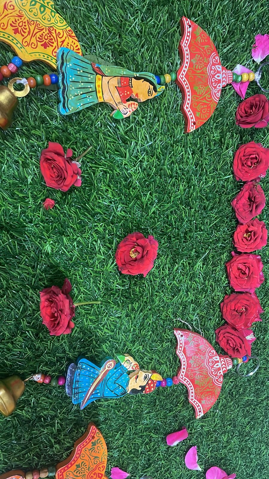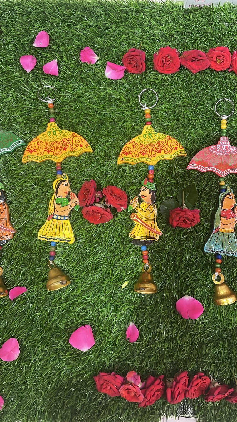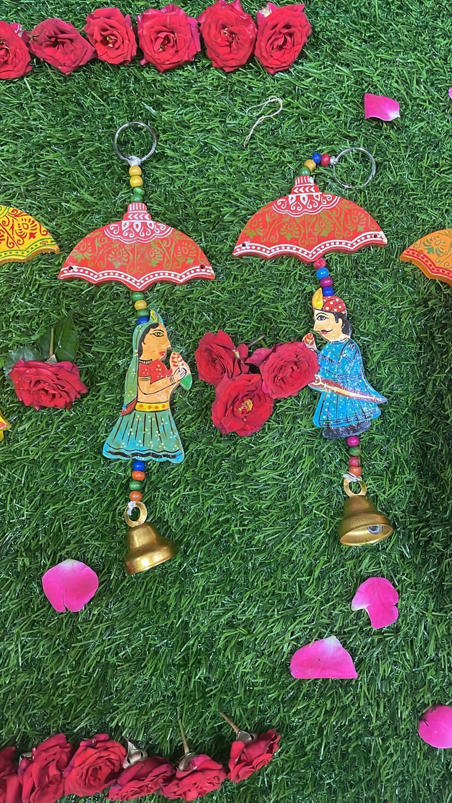 wooden hanging pair Wooden Raja Rani pair Diwali Navratri return gift bulk order Navratri wedding return gift. Torans are traditional decorative hangings that can be hanged on doors as well as walls and can be used on many occasions like Pooja Festivals Housewarming Parties Marriages and inaugurations etc. An effortless way to add luster to your festive gala. These door hangings are perfect for creating a grand look for your door A symbol of happiness and charm. Unique Design Traditional Look Easy to Clean Durable Auspicious Economical This Artistically Handcrafted Auspicious Bandan war Toran door hanging decorated with colorful wooden beads and wooden Raja Rani wall hanging in door decorations or main doors