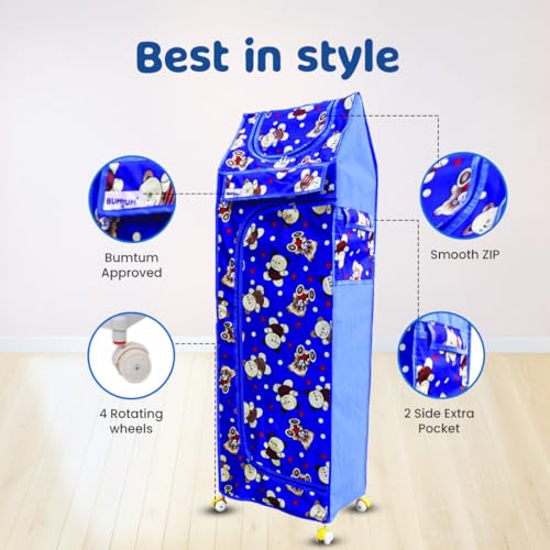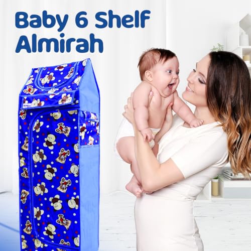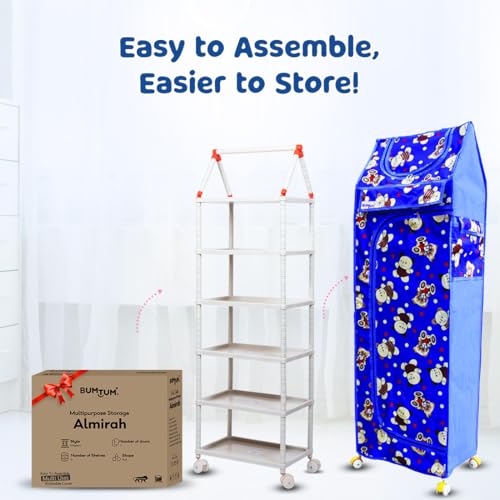 Bumtum Baby Wardrobe Multipurpose 6 Shelve |Foldable Almirah| Baby Wardrobe for Clothes Storage | Baby Wardrobe Cover | Baby Almirah with Wheels (Teddy Print, Blue)