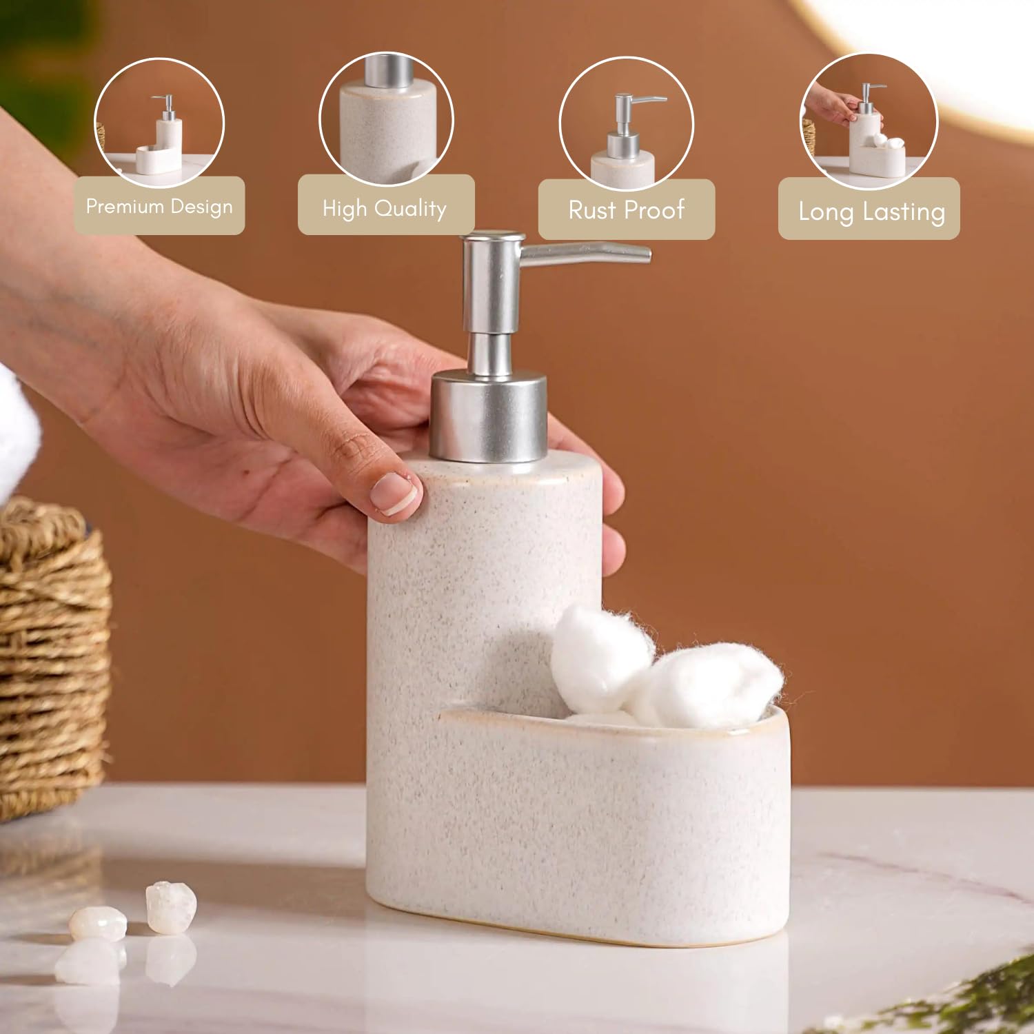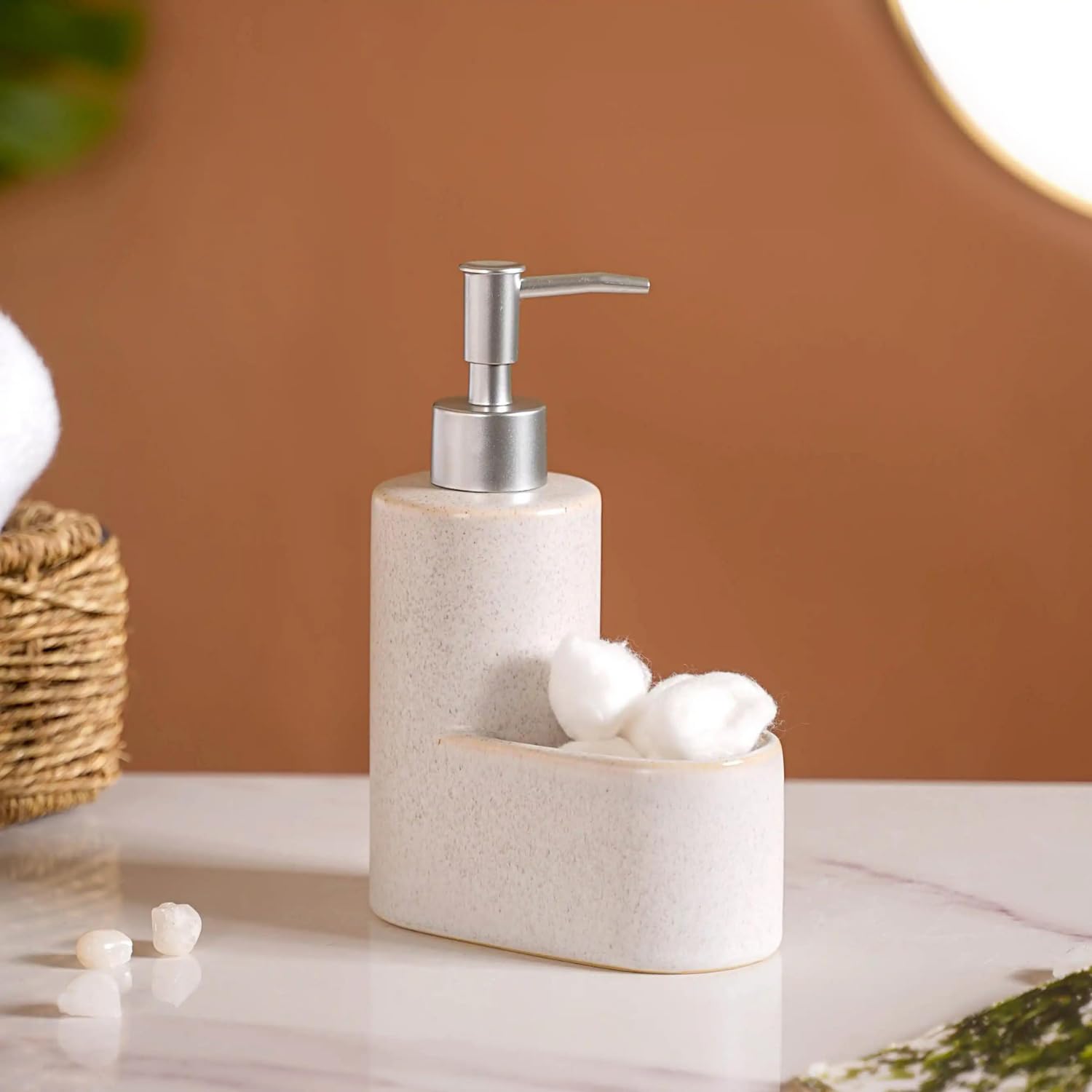 Nestasia Ceramic Bathroom Accessories - Handwash Dispenser with Sponge or Soap Holder | Off-White