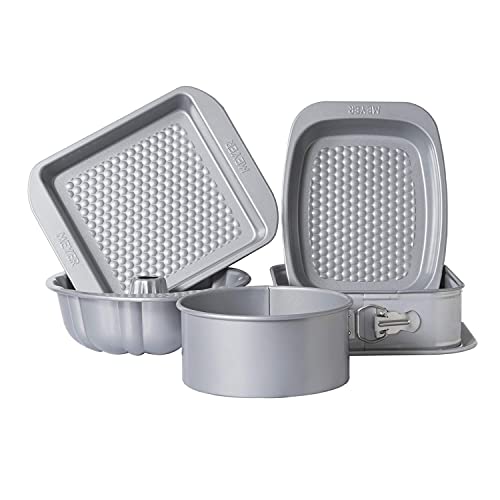 Meyer Bakemaster Non-Stick 5-Piece Bakeware Set - 23cm Springform Cake Tin 25cm Fluted Mould 20cm Loose Base Cake Tin 23cm Oven Roaster and 23cm Square Cake Pan