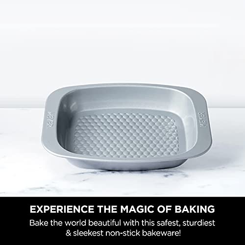 This set contains: 23cm Springform cake tin 25cm Fluted mould 20cm Loose base cake tin 23cm Oven roaster and 23cm Square cake pan. RevolutionaryHoneycomb pattern base for exceptional non-stick performance. With this technology ensure better air flow and e