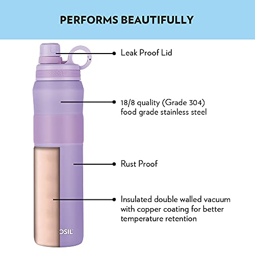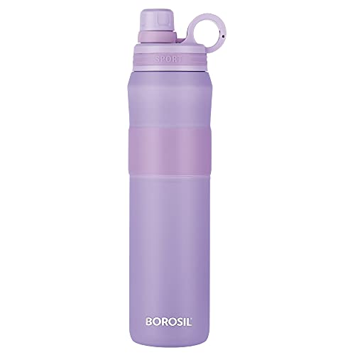 Borosil Hydra Thirst Burst Lavender Water Bottle, Stainless Steel Water Bottles, Vacuum Insulated Flask Bottles, 800 ml, Lavender Light Purple